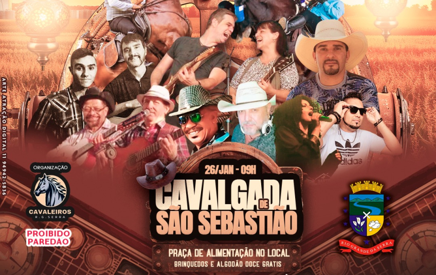 A Prefeitura Municipal de Rio Grande da Serra convida toda a comunidade para participar da 7ª Cavalgada e Festa do Padroeiro São Sebastião, que acontecerá no dia 26 de janeiro de 2025, na Praça da Bíblia, localizada na Avenida Dom Pedro I, Centro. O evento será realizado das 9h às 17h e promete ser um dia repleto de celebração, cultura e diversão.