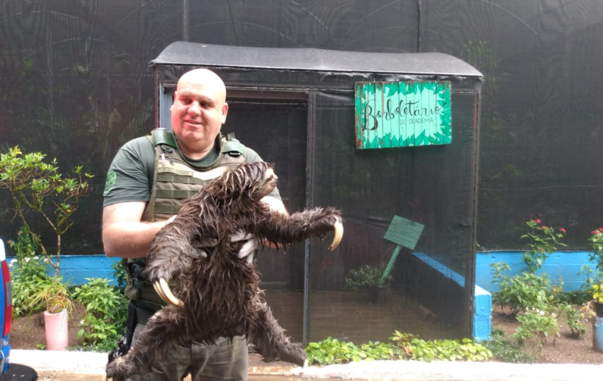 A Guarda Ambiental de Diadema resgatou uma bicho preguiça vista através das câmeras de videomonitoramento da Rua Alfenas.