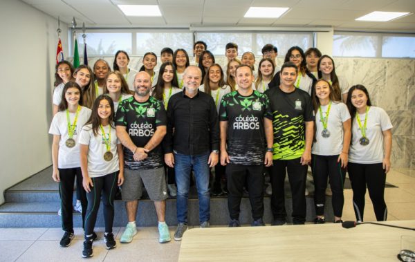 O prefeito de São Caetano do Sul, Tite Campanella, recebeu em seu gabinete na manhã desta quarta-feira (3/9) 25 alunos do Colégio Arbos...
