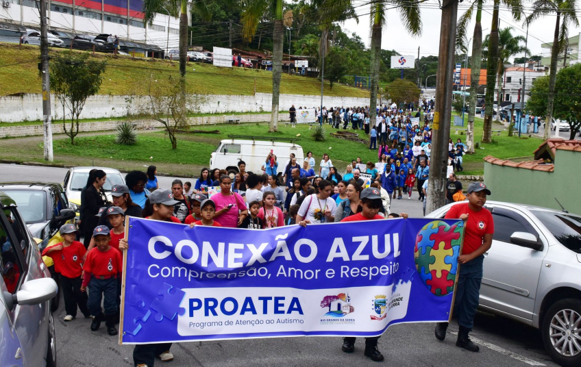 A cidade de Rio Grande da Serra promoveu neste sábado, 26/04, a Conexão Azul, uma caminhada de conscientização sobre o Transtorno do Espectro Autista (TEA), encerrando a programação do Abril Azul — mês dedicado à reflexão e ações sobre o autismo.