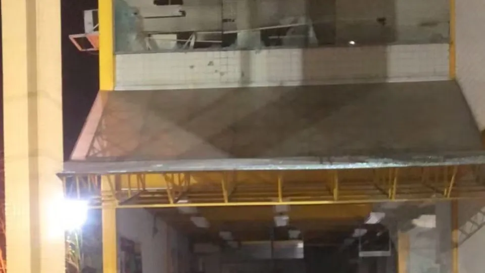 Imagens mostram que a entrada de vidro da 60ª DP (Campos Elíseos), em Duque de Caxias, ficou estilhaçada. Por volta das 22h50, um grupo armado abriu fogo na porta da delegacia, informou a Polícia Civil, por nota.