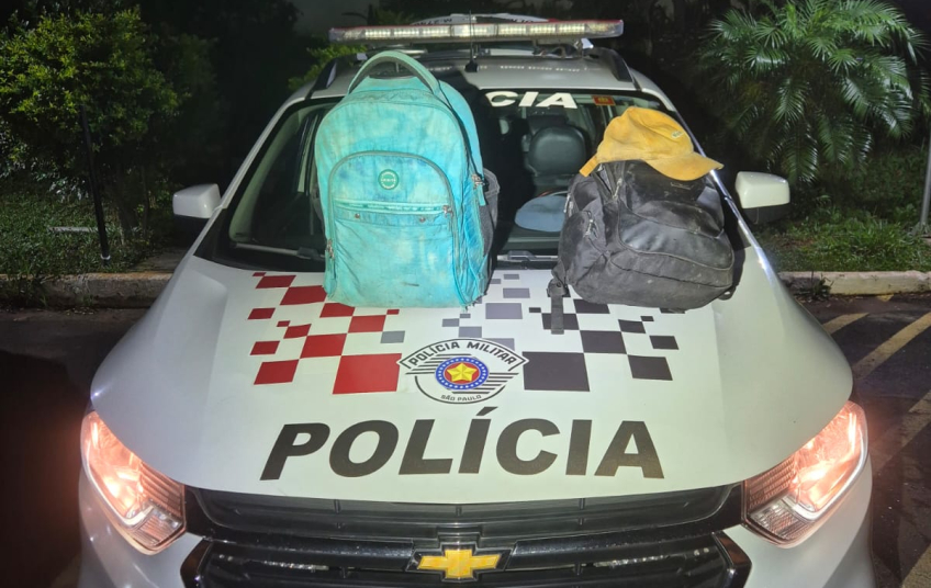 No local informado, a equipe se deparou com os indivíduos em posse de uma mochila contendo os itens furtados.