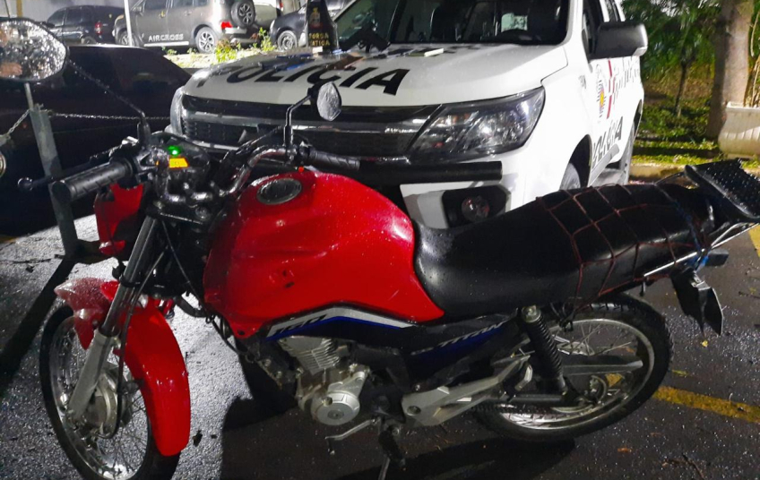 Durante a abordagem, foram encontrados cinco adolescentes e uma mulher adulta. Ao verificarem os dados da moto, os policiais constataram que ela ostentava uma placa falsa. Após análise do chassi, foi confirmado que o veículo era uma Honda 160 Fan, produto de roubo.