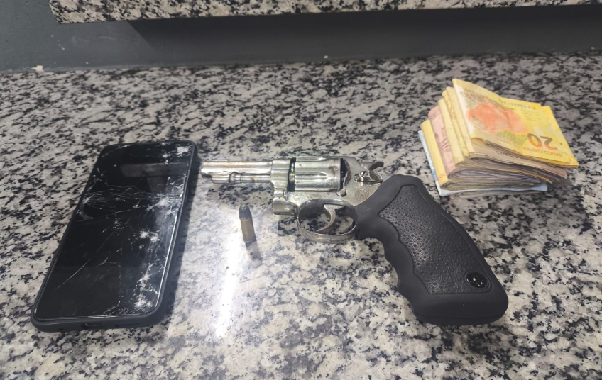 No local, a abordagem revelou muito mais do que o esperado: o indivíduo detido confessou ser procurado pela Justiça e admitiu possuir drogas e arma dentro do imóvel. Os policiais encontraram 1,390 kg de maconha, 28g de cocaína, 900 frascos de lança-perfume, três litros da mesma substância em galão, além de R$1.001,00 em espécie, um celular e um revólver calibre .32 com numeração suprimida.