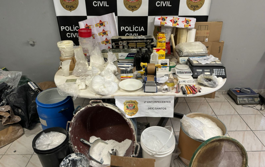 A Polícia Civil encontrou um “laboratório” de drogas na cidade de Guarujá, no litoral de São Paulo, na segunda-feira (11). Um homem de 29 anos, suspeito de atuar como o “gerente” do tráfico na Baixada Santista, foi preso em flagrante.