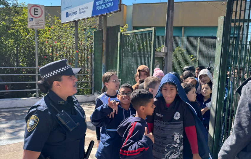 Guardas Civis Municipais de Diadema fizeram a travessia de crianças da EMEB Letícia Beatriz Pessa na manhã de hoje, quarta-feira, 22 de outubro, até o Jardim Botânico de Diadema para visitação ao Borboletário. Organizados em fila, alguns de mãos dadas com a guarda, as crianças foram acompanhadas com segurança para curtir um dos espaços mais bonitos e de educação ambiental da cidade.