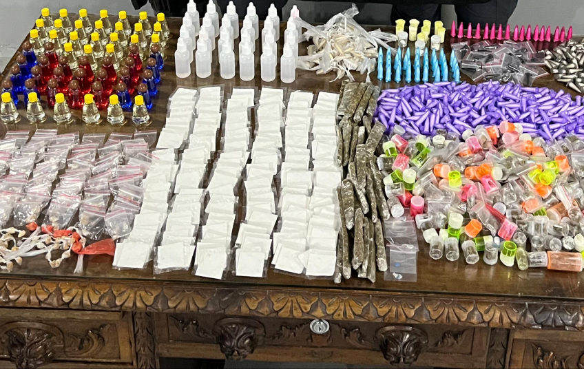 Durante a tentativa de fuga, o homem dispensou uma mochila, que foi recuperada por um dos policiais. No interior da mochila, foram localizadas 171 pedras de crack, 79 frascos de lança-perfume, 422 porções de maconha, 665 porções de cocaína, quatro comprimidos de ecstasy e R$ 25 em dinheiro.