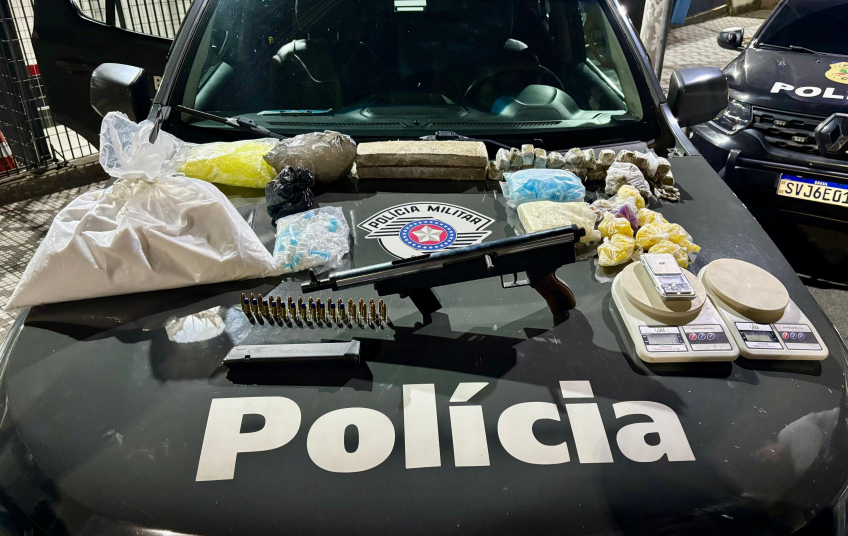 A Polícia Militar prendeu um homem, de 33 anos, em flagrante após encontrar na casa dele mais de 1,1 mil porções de drogas, sendo a maioria já embaladas para a venda, e uma submetralhadora calibre 9 mm. A ação aconteceu na região da Cidade Nova, em Pindamonhangaba, interior de São Paulo, na segunda-feira (26).