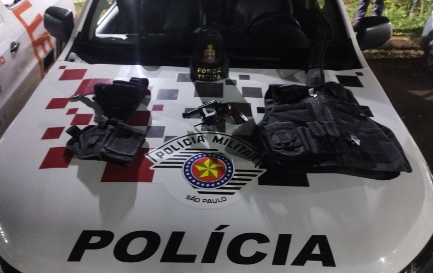 Na busca veicular, foram localizados ainda uma capa de colete balístico, um coldre e um cinturão tático.