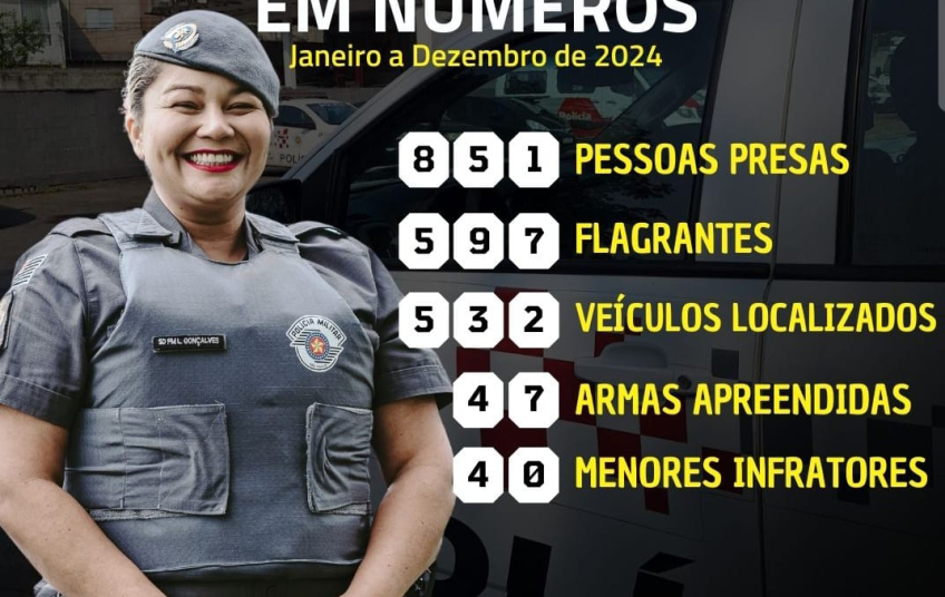 Graças ao empenho e à dedicação ao longo de 2024, o batalhão registrou 851 prisões, 597 flagrantes, 532 veículos localizados e devolvidos aos proprietários, 47 armas apreendidas e a detenção de 40 menores infratores.