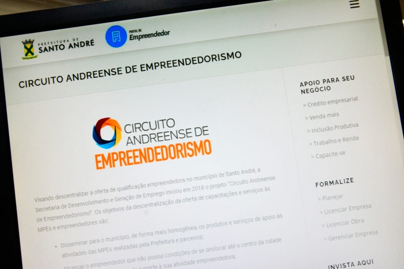 Programa Circuito Andreense de Empreendedorismo – Além das palestras on-line, o programa promove palestras presenciais em espaços da rede municipal de ensino localizados nas regiões mais afastadas do Centro, como os Cesas e os Centros Públicos de Formação Profissional. Além disso, conta com atividades itinerantes realizadas mensalmente em centros comerciais nos bairros, oferecendo aos empreendedores a oportunidade de tirar dúvidas sobre gestão de negócios e receber consultoria gratuita.