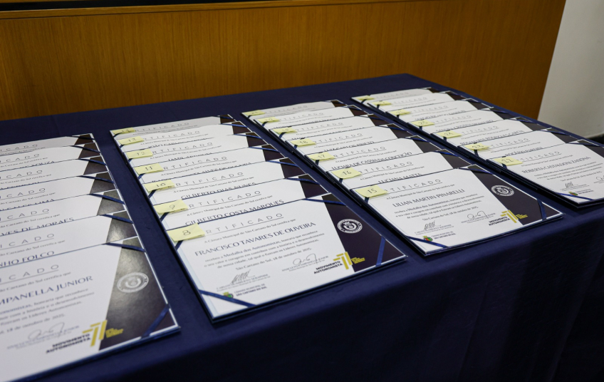 No sábado (18/10), foi realizada uma sessão solene no Salão Nobre Professor Roberto Manzano, da Câmara Municipal, onde 28 cidadãos foram homenageados com a entrega da Medalha dos Autonomistas.