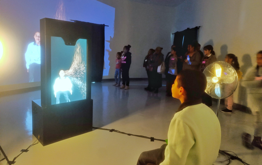Outra exposição é a obra interativa “Fragmentos”, do artista Rafael Ski. A mostra na sala de artes visuais propõe uma experiência sensorial, onde a imagem do visitante se fragmenta em partículas digitais que dançam ao vento até desaparecerem completamente.