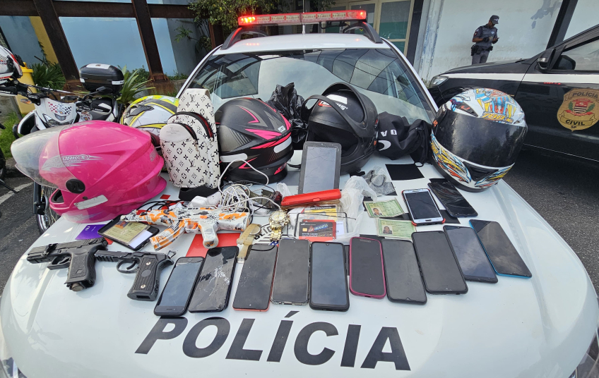 As motos que os criminosos usaram também foram apreendidas. De acordo com o registro, um homem, procurado pela Justiça, foi capturado dentre os suspeitos que estavam na casa e encaminhado à delegacia. Ele participou do roubo aos veículos.
