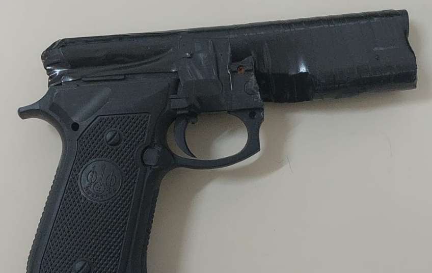 No local, a equipe policial identificou o estudante e realizou a abordagem. Inicialmente, ele negou estar com o objeto, afirmando apenas tê-lo visto com um amigo. No entanto, após ser questionado, indicou que o simulacro de arma de fogo estava escondido na estante da sala de aula.