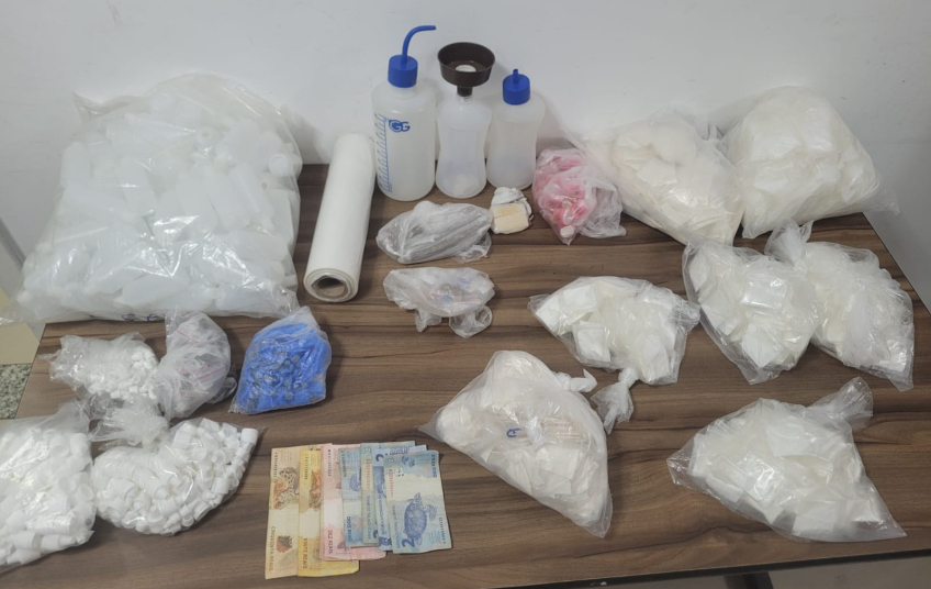 Já na casa, a equipe encontrou cerca de 1,9 mil porções de cocaína, 104 pedras de crack e 79 porções de maconha, totalizando 2,1 mil porções. Além das drogas, os policiais também apreenderam mais de 300 embalagens usadas para fracionar e comercializar os entorpecentes.