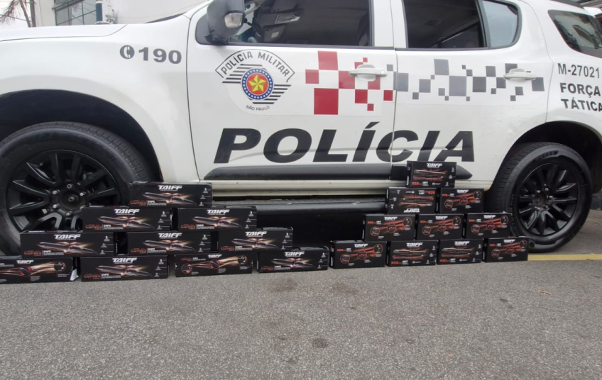 Realizado o breve acompanhamento, o indivíduo foi contido e submetido à busca pessoal, sendo localizado R$ 81,00 em espécie. Na vistoria da sacola que o suspeito carregava, foram encontradas 10 caixas de modeladores Taiff e 10 caixas de pranchas Taiff, avaliadas em R$ 3.180,00, todos identificados como produtos furtados da loja Casas Bahia.