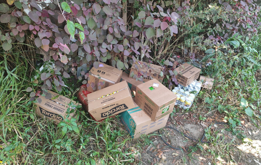 Entre os produtos recuperados estavam alimentos, bebidas e itens de limpeza, incluindo: 75 unidades de chocolate Lacta Bis (100g), 60 unidades de água de coco (1L), 30 unidades de flocos de milho Mikharina (500g), 24 unidades de latas de cerveja (350ml), 96 unidades de perfumante UAU (500ml), entre outros produtos.