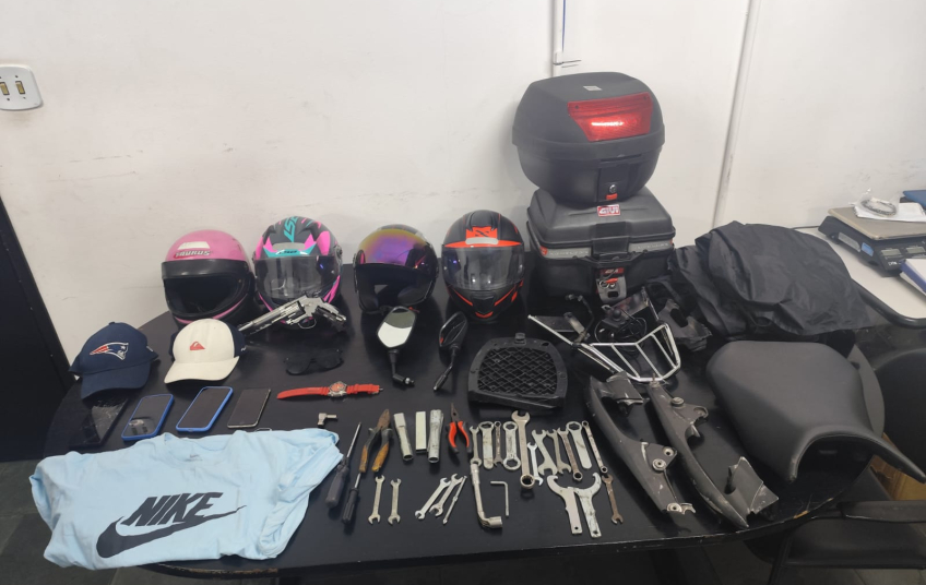 Ao chegarem ao local indicado, os policiais abordaram quatro indivíduos, sendo que, durante a entrevista, um deles revelou que havia uma motocicleta roubada na residência e que o imóvel estava sendo utilizado como um desmanche e depósito de produtos ilícitos. A vistoria no local revelou uma série de itens ilícitos, incluindo:
