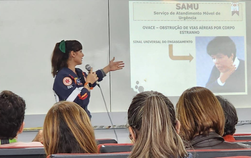 Objetivo é garantir a proteção de alunos na rede. Entre vários assuntos, uma enfermeira do SAMU explicou as manobras para desobstruir vias aéreas