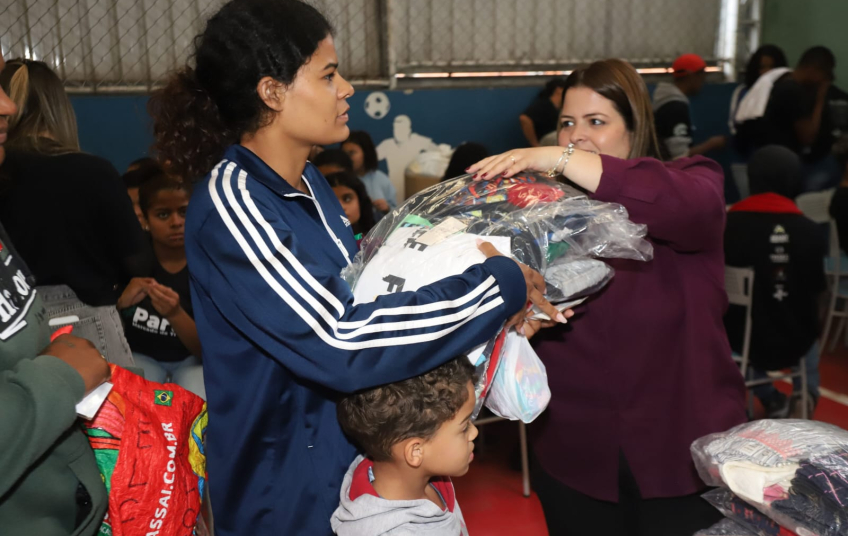 A Secretaria de Assistência Social da Prefeitura de Santo André, por meio do Fundo Social de Solidariedade, iniciou nesta sexta-feira (23) a Campanha do Agasalho 2025. E a ação já começou com o primeiro ato: a entrega de cerca de 7 mil peças para 100 famílias atendidas pela Instituição Beneficente Irmã Marli, localizada no Morro da Kibon, no Condomínio Maracanã. Entre as doações estavam roupas e acessórios de frio, além de cobertores.