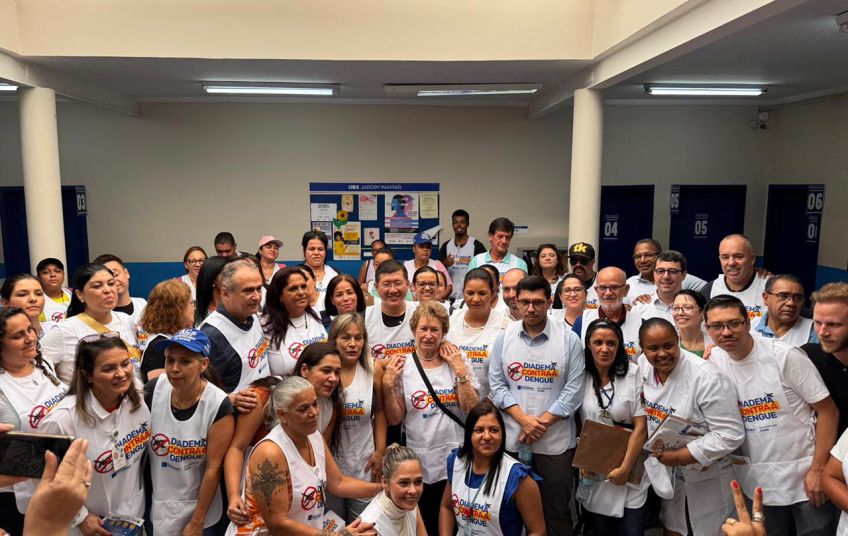 A campanha começou com uma concentração na Unidade Básica de Saúde (UBS) Inamar e reuniu aproximadamente 60 profissionais de saúde. Durante o mutirão, as equipes realizaram visitas domiciliares, intensificando a busca ativa e promovendo ações de conscientização para a eliminação de focos do mosquito transmissor da dengue, zika, chikungunya e febre amarela urbana.