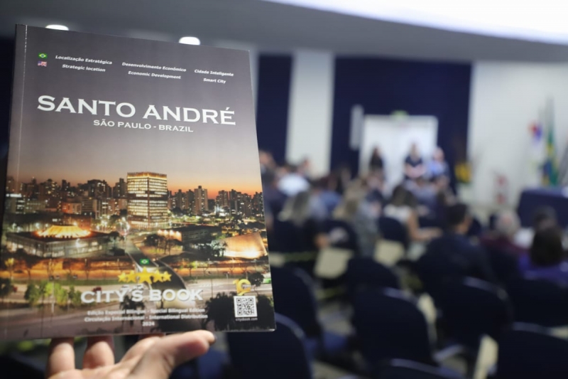 Santo André, 20 de junho de 2024 – O auditório da Fundação Santo André recebeu, nesta quinta-feira (20), o lançamento da terceira edição da revista City’s Book Santo André. A publicação, com 98 páginas e em duas línguas (português e inglês), atuará como um cartão de visitas do município, trazendo informações sobre diversos aspectos da cidade como dados sociais, sobre qualidade de vida e sobretudo economia. O evento de lançamento contou com a presença do Prefeito Paulo Serra, do secretário de Desenvolvimento e Geração de Emprego, Evandro Banzato, e o secretário de Inovação e Administração, Pedro Seno.