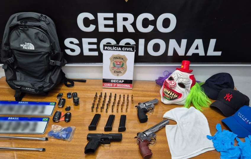 Além disso, o veículo utilizado pela quadrilha, que estava com a placa trocada, também foi recolhido, bem como dez celulares e roupas diversas, entre elas as que os suspeitos usaram no momento do roubo.