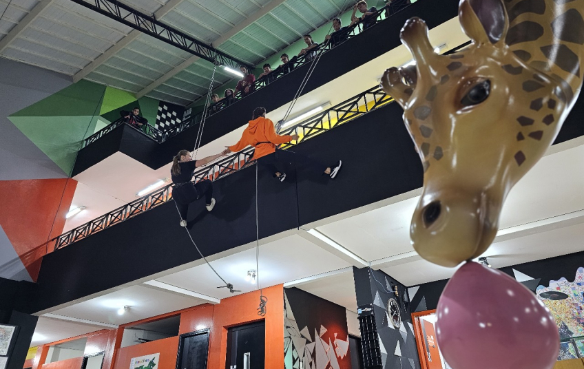 Nesta terça-feira (24), primeiro dia de atividades, a EMARP ficou movimentada. “Essa é segunda vez que venho à escola e esse espaço é incrível. Quis muito conhecer a aula de dança vertical”, comentou Maria Eduarda Campos, moradora do Vila Guerda.