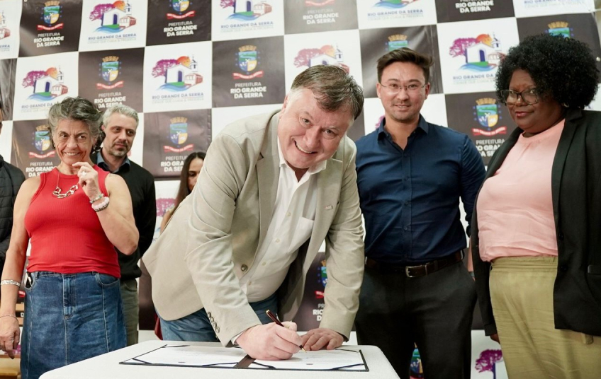 Durante a cerimônia, o prefeito Akira Auriani e o secretário estadual formalizaram a adesão ao programa com a assinatura do termo que consolida Rio Grande da Serra como Polo do PEI, garantindo que a iniciativa funcionará na Secretaria de Desenvolvimento Econômico.