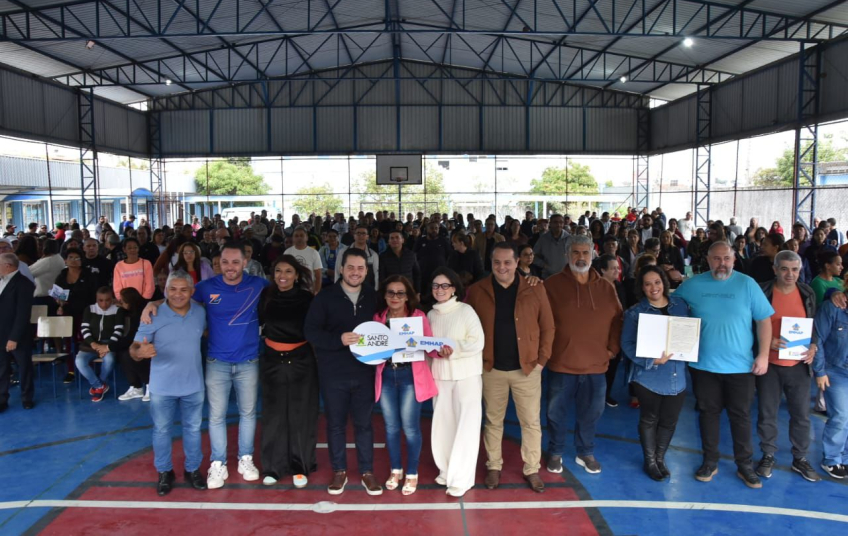 A Prefeitura de Santo André, por meio da Secretaria de Habitação e Regularização Fundiária, concluiu neste domingo (8) o processo de entrega de matrículas do Conjunto Habitacional Prestes Maia, localizado na Vila Sacadura Cabral. Em cerimônia realizada na Emeief (Escola Municipal de Educação Infantil e Ensino Fundamental) José do Prado Silveira, foram distribuídos 212 títulos de propriedade.