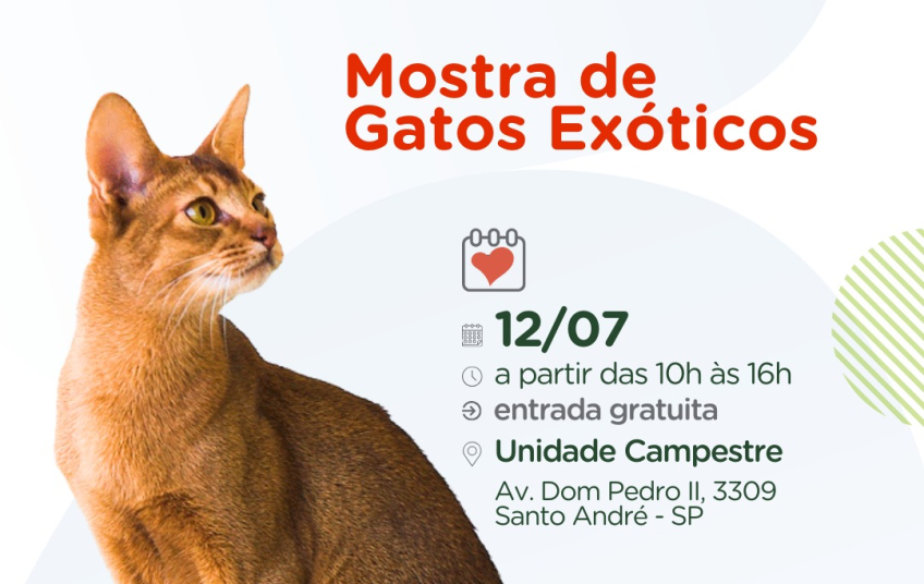 No sábado, 12 de julho, das 10h às 16h, a unidade Campestre do Dr. Hato Hospital Veterinário e Pet Shop, em Santo André, vira palco para um espetáculo felino gratuito e aberto ao público. É a 3ª Mostra de Gatos Exóticos, promovida em parceria com a Premier Pet, reunindo nove raças que hipnotizam pela beleza, personalidade e histórias fascinantes.
