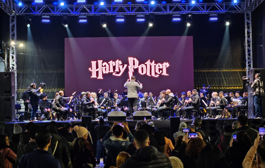 Com o concerto “Trilhas de Cinema”, os 35 instrumentistas transformaram o Paço Municipal em uma sala de cinema a céu aberto, apresentando arranjos especiais de sucessos como Piratas do Caribe, Harry Potter e O Senhor dos Anéis.