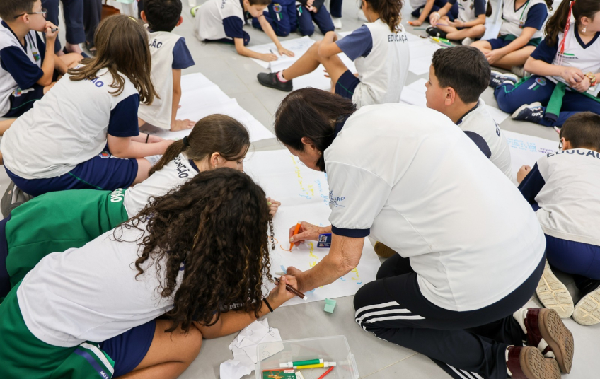 “Chegou a hora de vocês conhecerem a nossa nova casa. Recebemos vocês com muito carinho. Esse projeto é muito bonito”, disse Simone. Aos estudantes da EMEF Santina, a educadora falou: “Eu tenho certeza que vocês vão se lembrar desse dia para o resto da vida de vocês.”