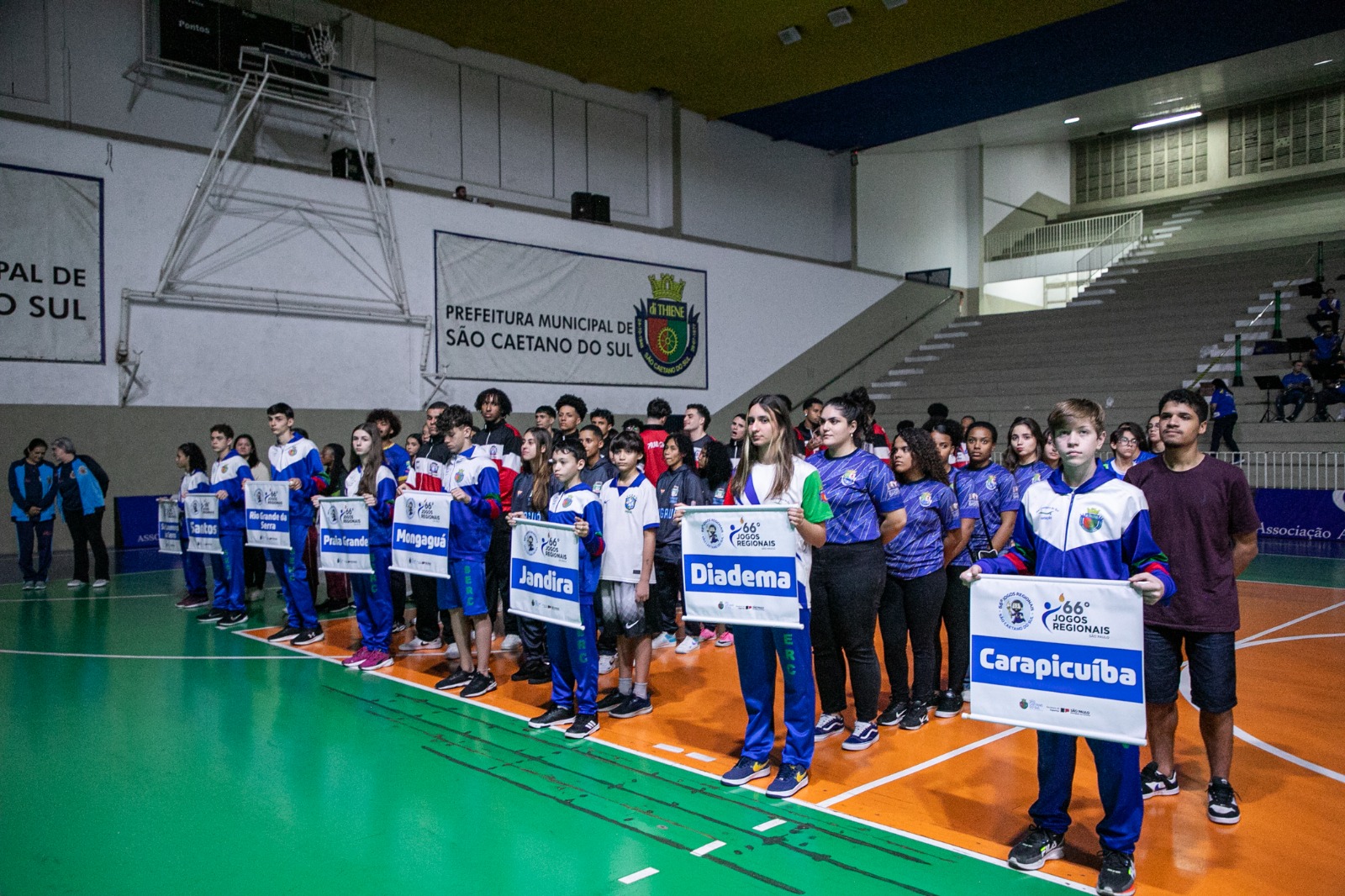 A 66ª edição dos Jogos Regionais teve sua abertura oficial na noite desta sexta-feira (5/7), no Ginásio Poliesportivo Milton Feijão, no Bairro Olímpico, em São Caetano. A cerimônia, que teve o secretário de Esporte, Lazer e Juventude (SELJ), Muro Checkin, representando o prefeito José Auricchio Júnior, foi acompanhada por representantes das delegações e moradores.