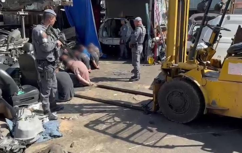 Os policiais foram até o local e viram o automóvel pela fresta do portão, então acionaram o responsável pelo estabelecimento. Ele permitiu a entrada dos militares, que flagraram o momento do desmanche de um veículo. Após pesquisa no sistema de inteligência, foi descoberto que esse carro também era furtado.
