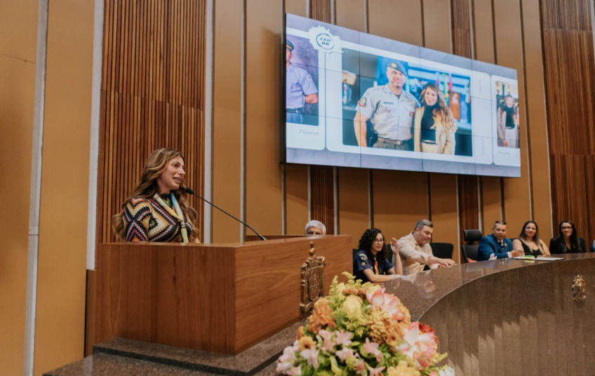 Honraria foi entregue pelo vereador Leo RR, autor do projeto de lei; natural de São Sebastião/SP, Jéssica é sargento da Polícia Militar
